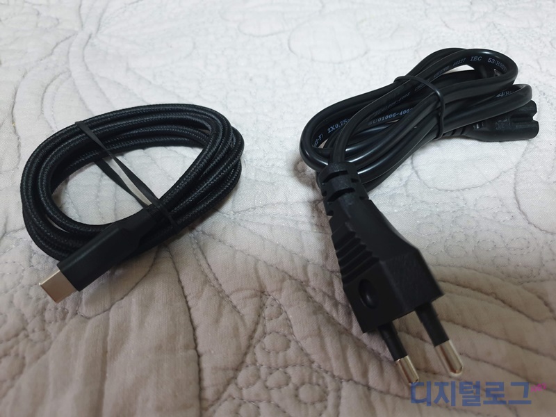 구성품은 단출하다. USB-PD 충전이 가능한 C to C 고속 충전 케이블과 전원 케이블 그리고 휴대용 파우치이다.